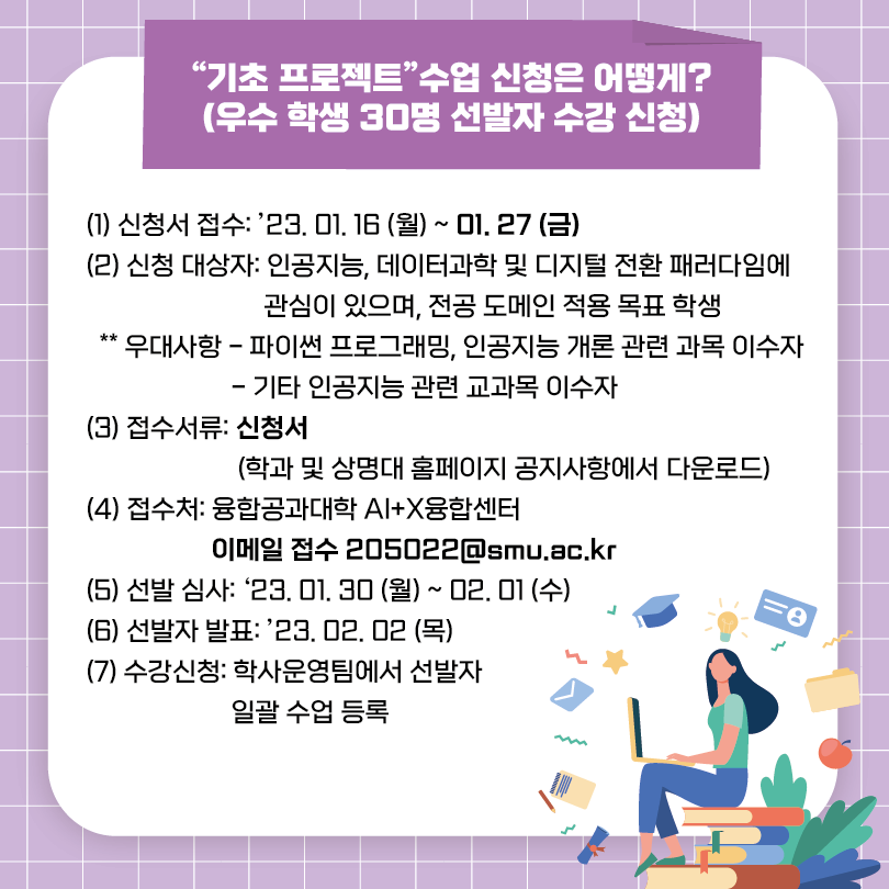 - [마감] '23학년도 1학기 “AI+X 선도인재양성 기초 프로젝트” 교과목 수업 신청