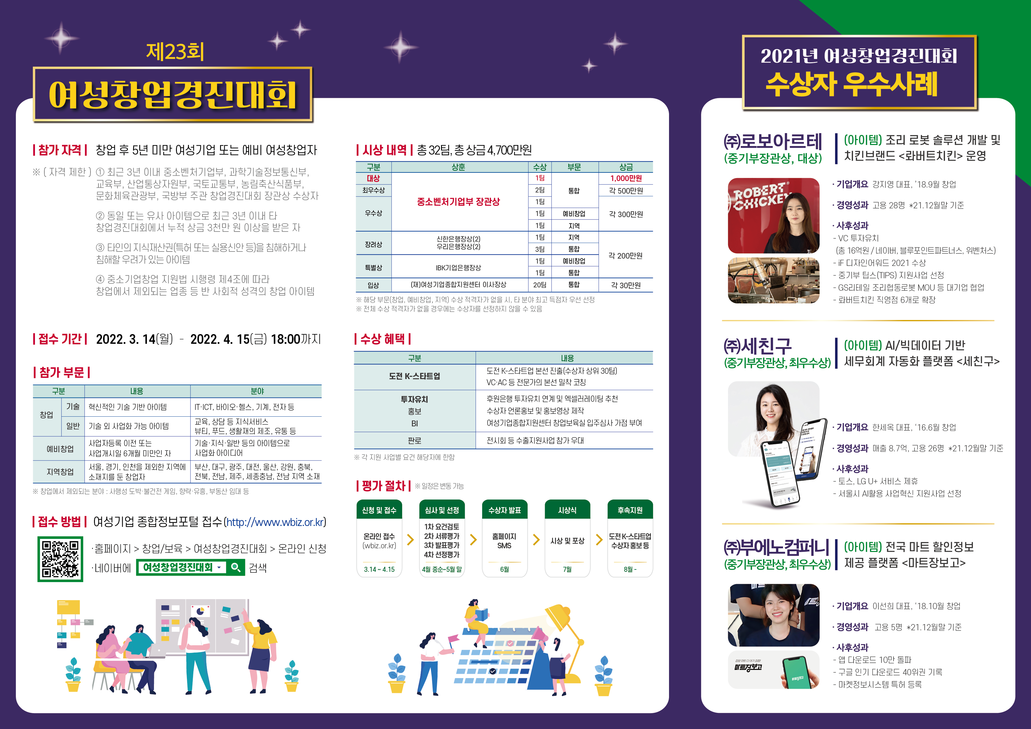 - [여성기업종합지원센터] 2022년 여성창업경진대회 참가자 모집