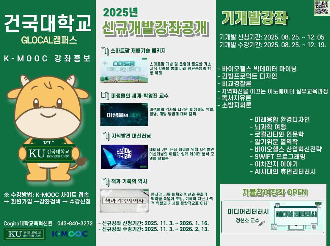 - 건국대학교 GLOCAL(글로컬)캠퍼스 2025년 2학기 K-MOOC 강좌 수강 안내