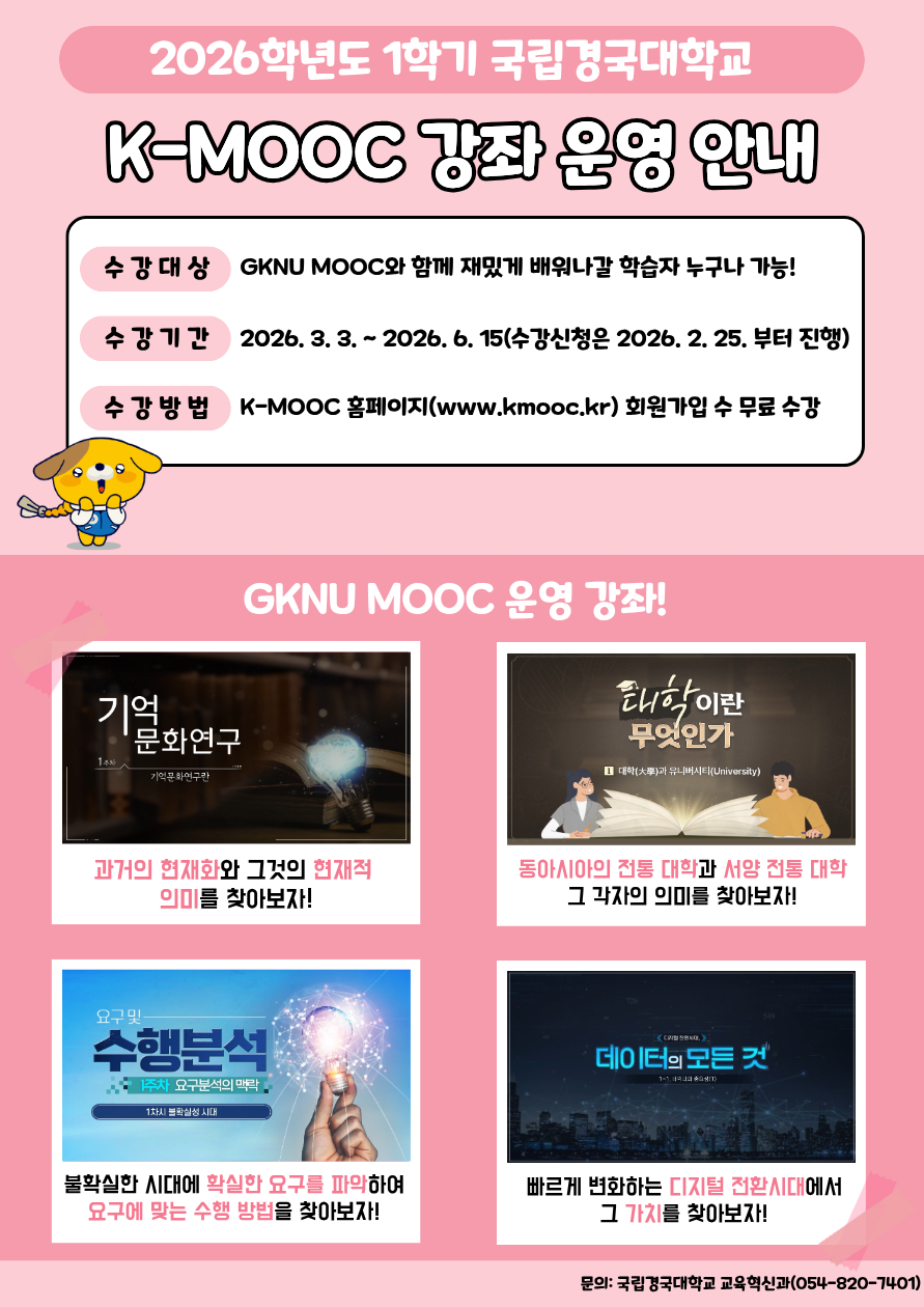 국립경국대학교 2026년 1학기 K-MOOC 강좌 수강 안내