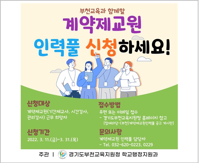 - [기타] 2022년 경기도부천교육지원청 계약제교원 인력풀 모집 안내
