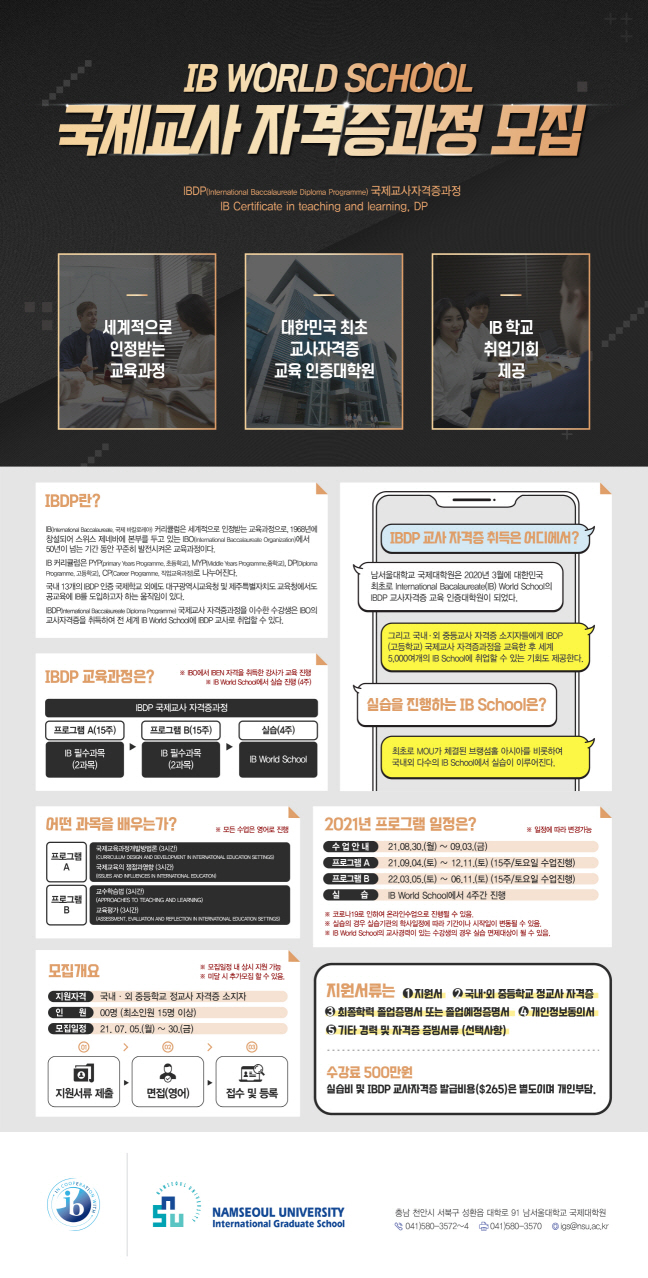 - 국제대학원 IBDP 국제교사자격증과정 모집 홍보
