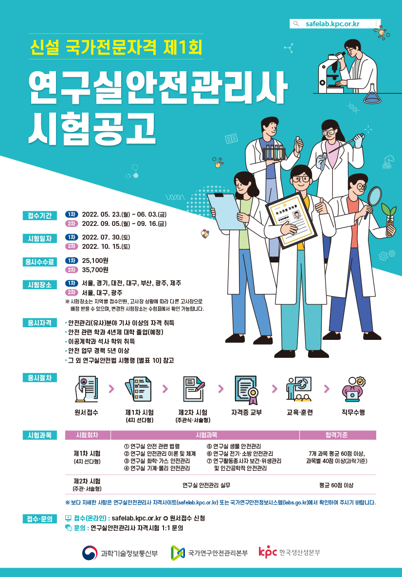 - [과학기술정보통신부] 2022년도 제1회 연구실안전관리사 자격시험 시행계획 안내