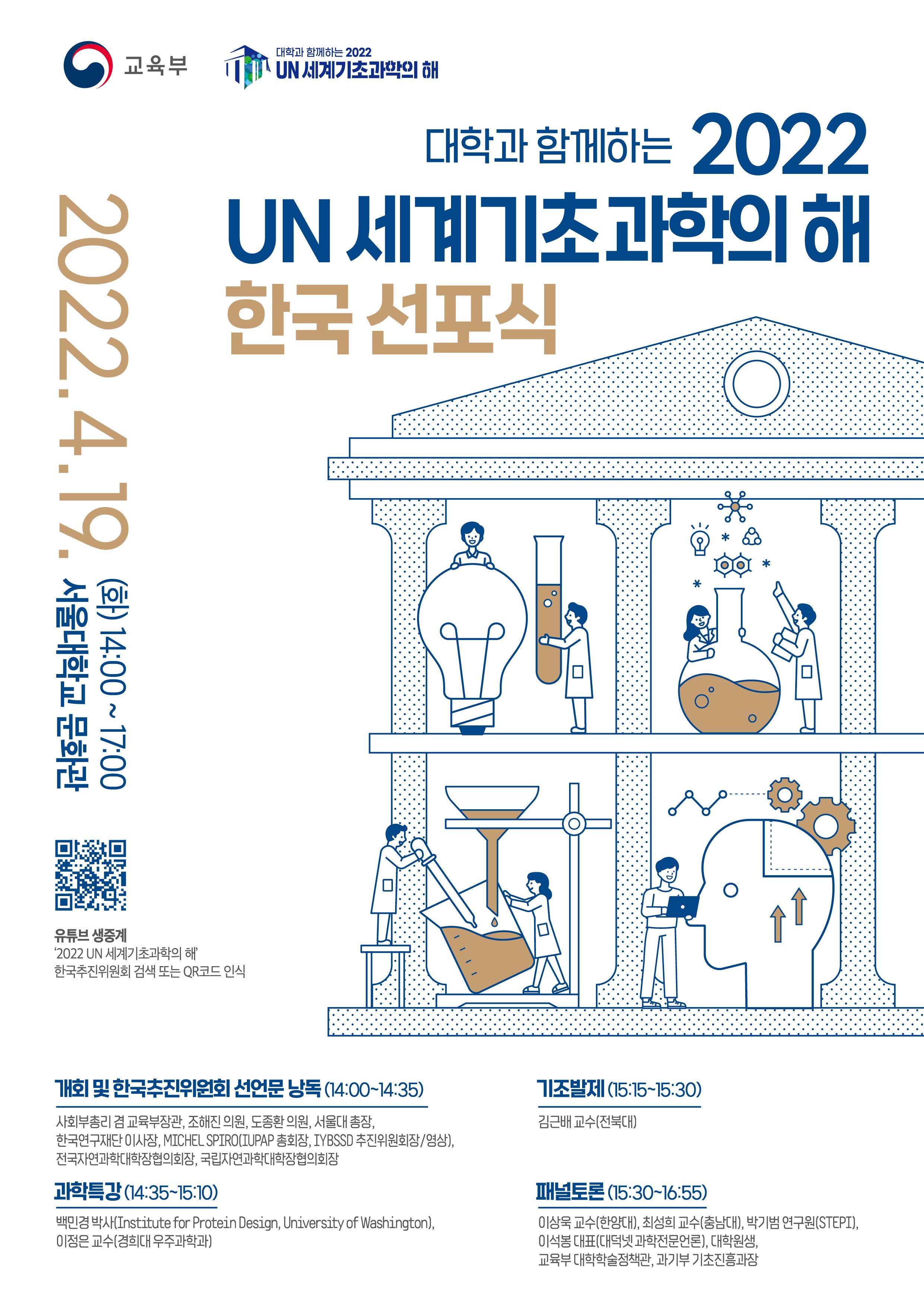 - [교육부] 「대학과 함께하는 2022 UN 세계기초과학의 해 한국선포식」 개최 알림