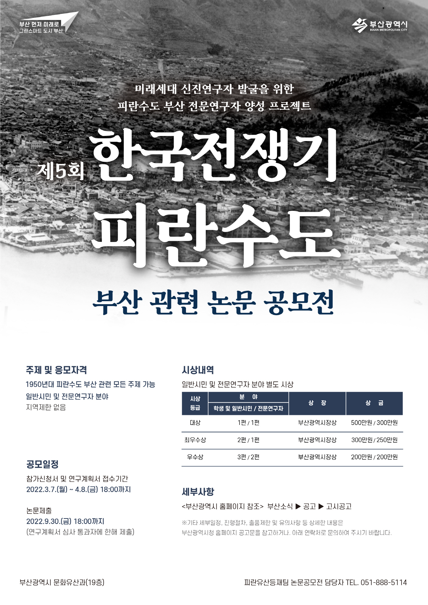 - [부산광역시] 제5회 한국전쟁기 피란수도 부산 논문공모전 안내