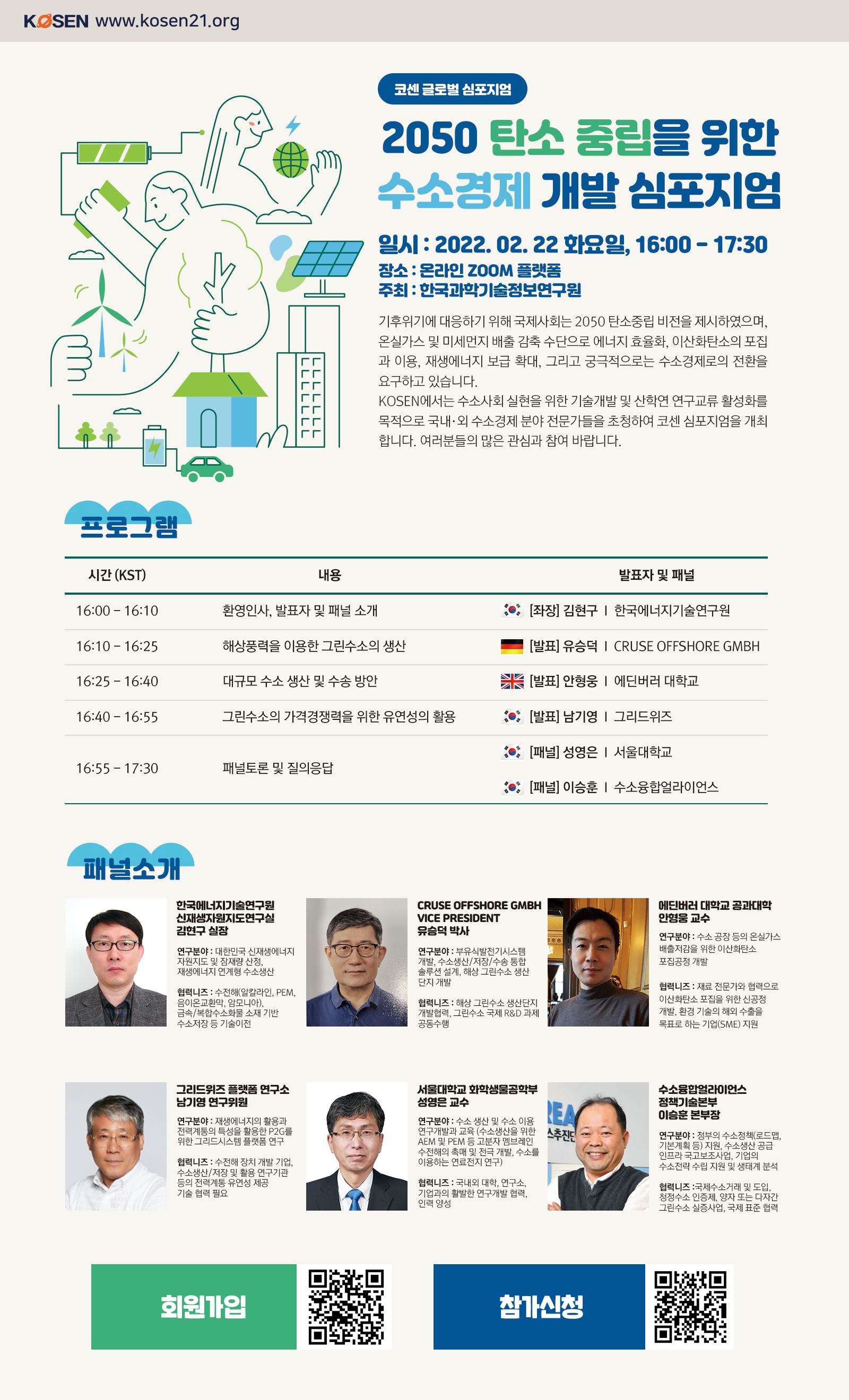 - [한국과학기술정보연구원] [2050 탄소 중립을 위한 수소경제 개발] 코센 글로벌 심포지엄 안내