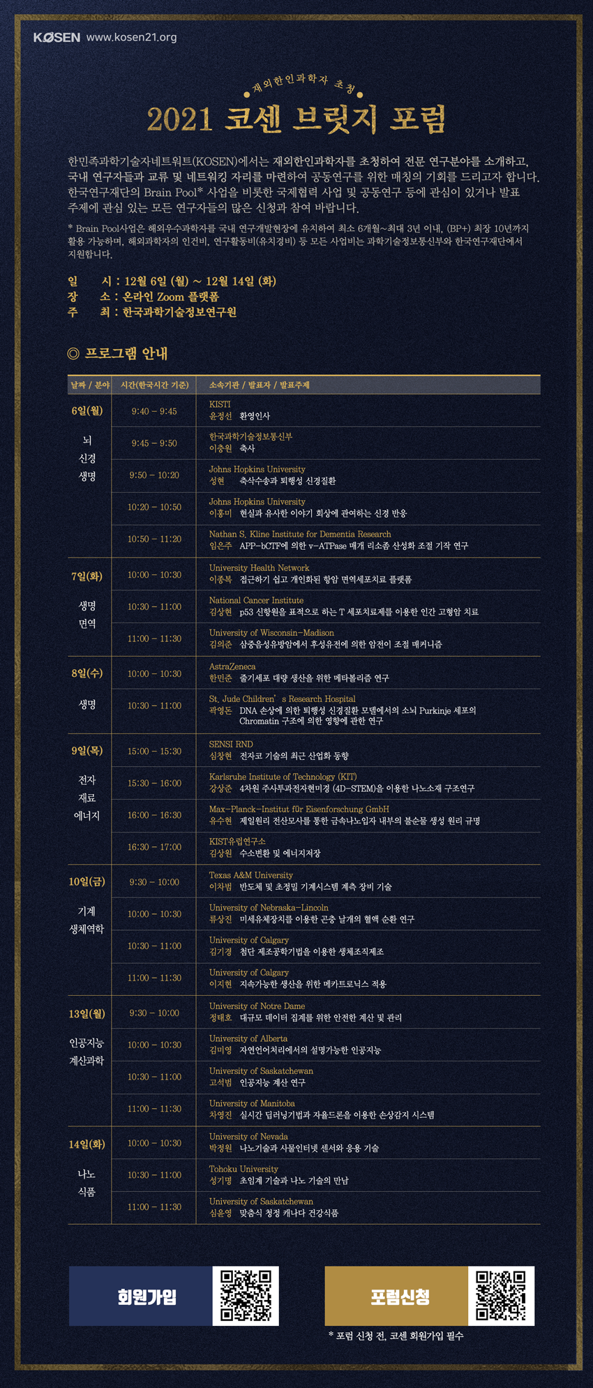 - [한국과학기술정보연구원] 재외한인과학자 초청 코센 브릿지 포럼 안내