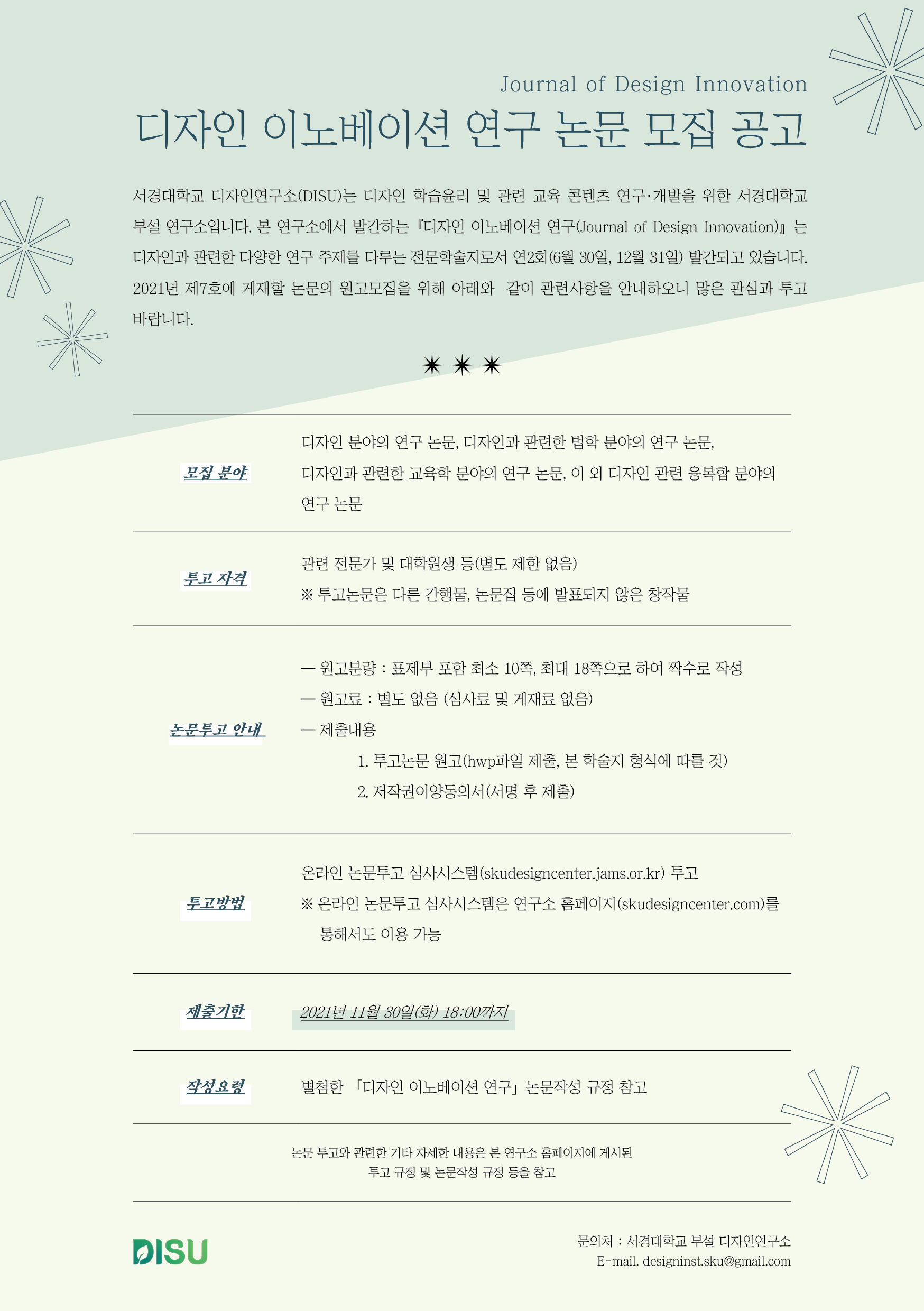 - [일반공지] [서경대학교 디자인연구소] 「디자인 이노베이션 연구」 논문 모집 공고 안내