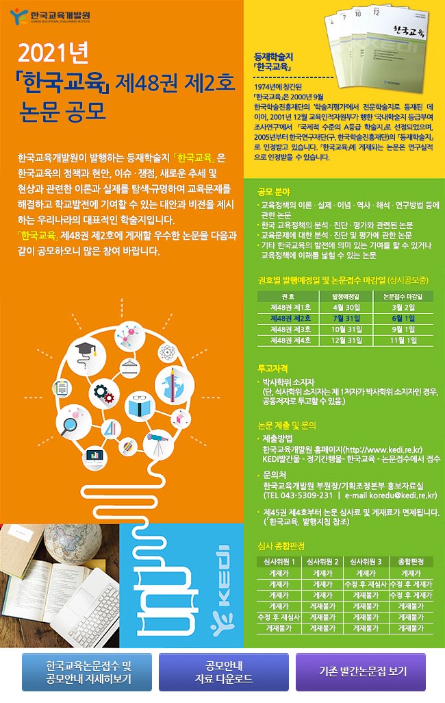- [한국교육개발원] 등재학술지 한국교육 제48권 제2호 게재논문 공모 안내