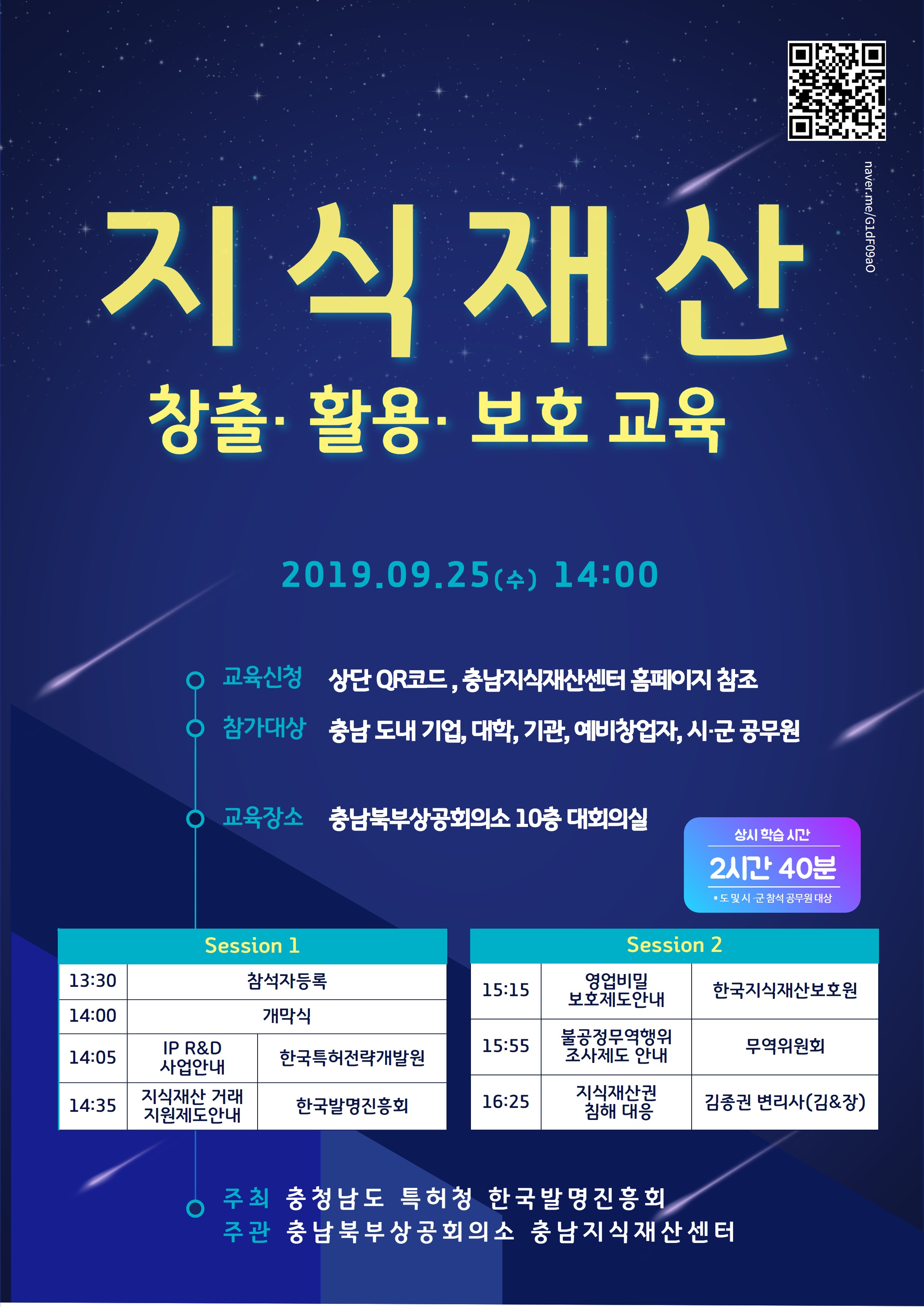 - [충청남도] 「지식재산 창출 · 활용 · 보호 교육」참석 및 홍보 요청
