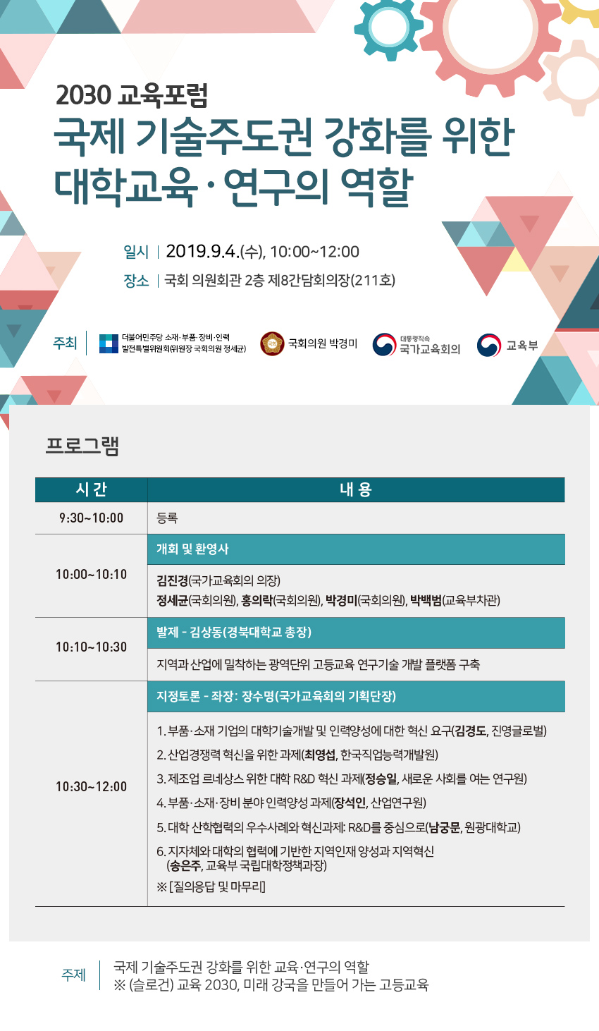 - 2030 교육포럼『국제 기술주도권 강화를 위한 대학교육 · 연구의 역할』 개최 알림
