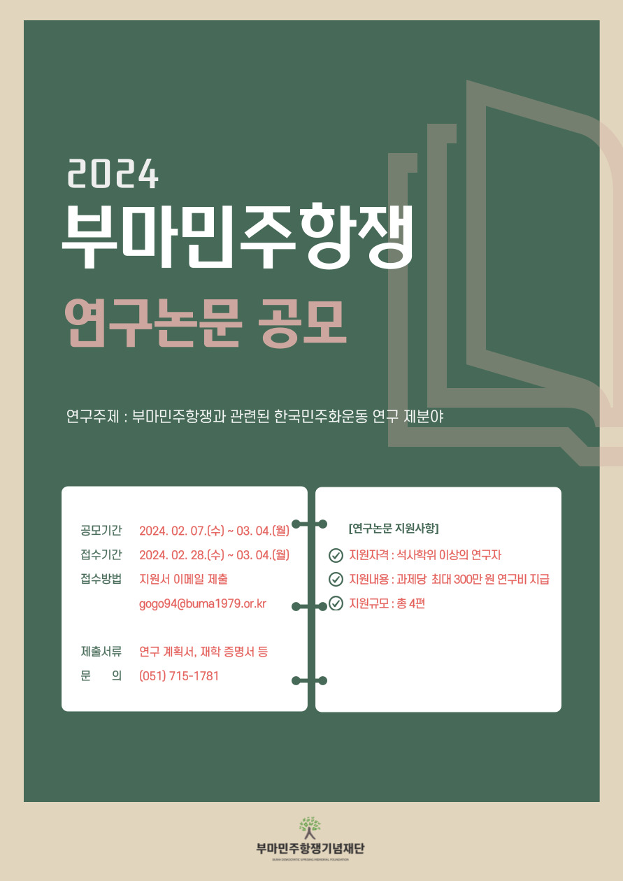 - ((재)부마민주항쟁기념재단)2024년 부마민주항쟁기념재단 연구논문 공모