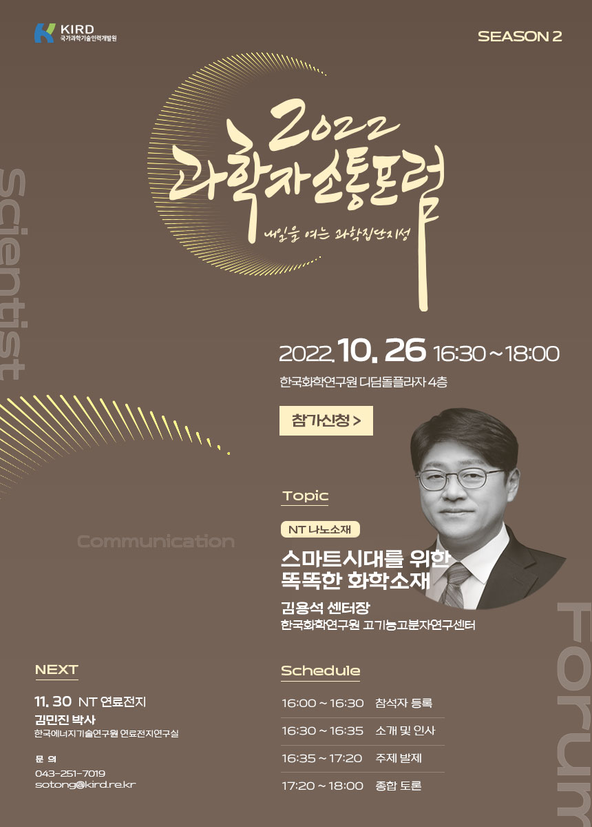 - [일반공지] [국가과학기술인력개발원] 『2022년 과학자 소통 포럼 제7회(나노소재 편)』 참여 안내 및 홍보 안내