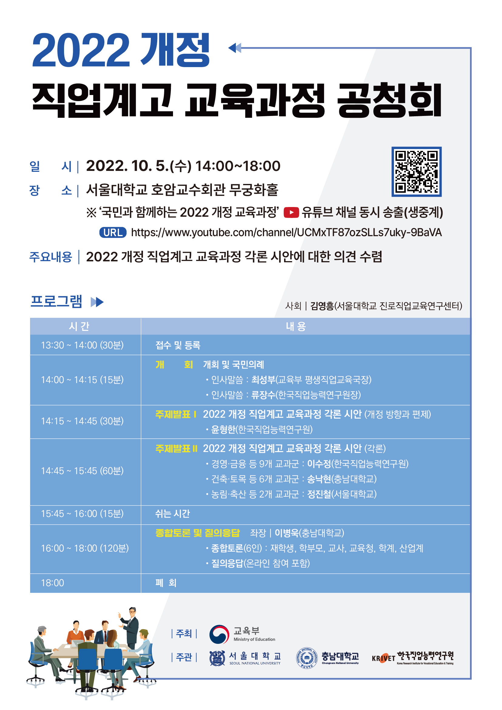 - [교육부] (중요) 2022 개정 직업계고 교육과정 공청회 개최 안내