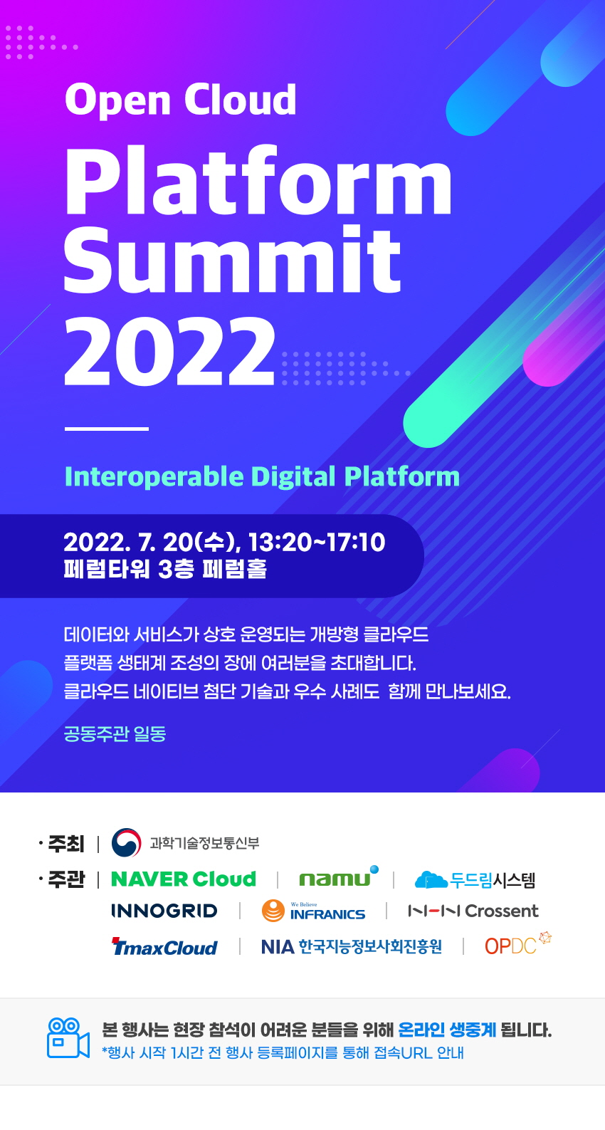 - [한국진흥정보사회진흥원] 「Open Cloud Platform Summit 2022」행사 홍보 안내