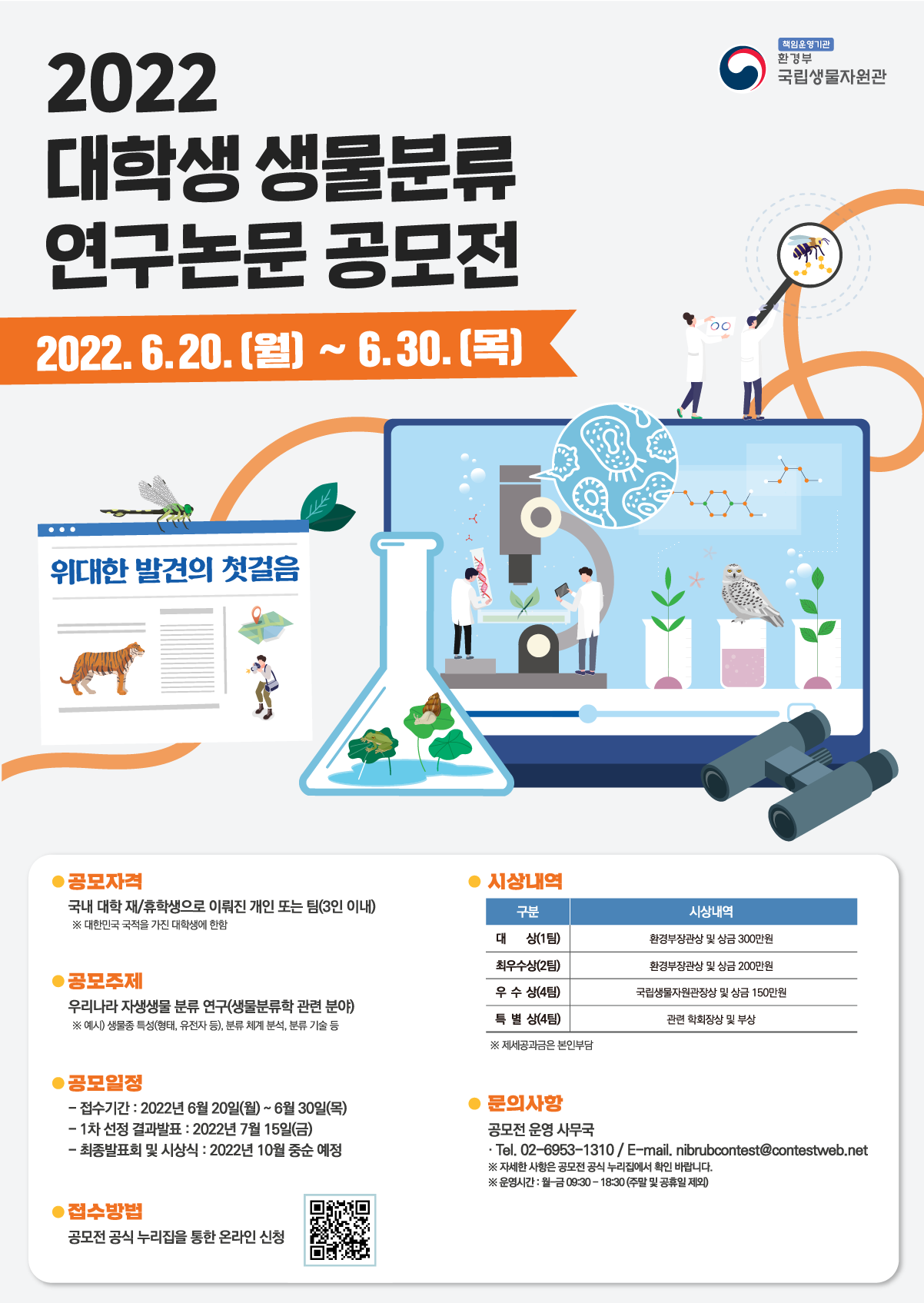 - [국립생물자원관] 「2022 대학생 생물분류 연구논문 공모전」 개최 안내