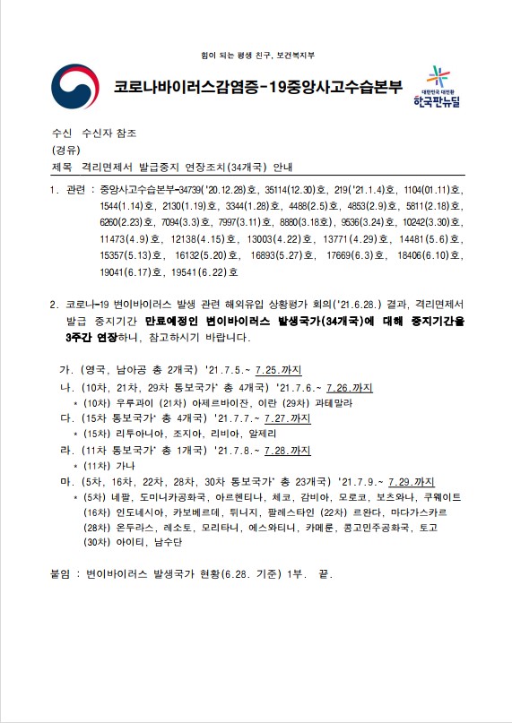 - [교육부] 해외입국자 격리면제서 발급업무 안내