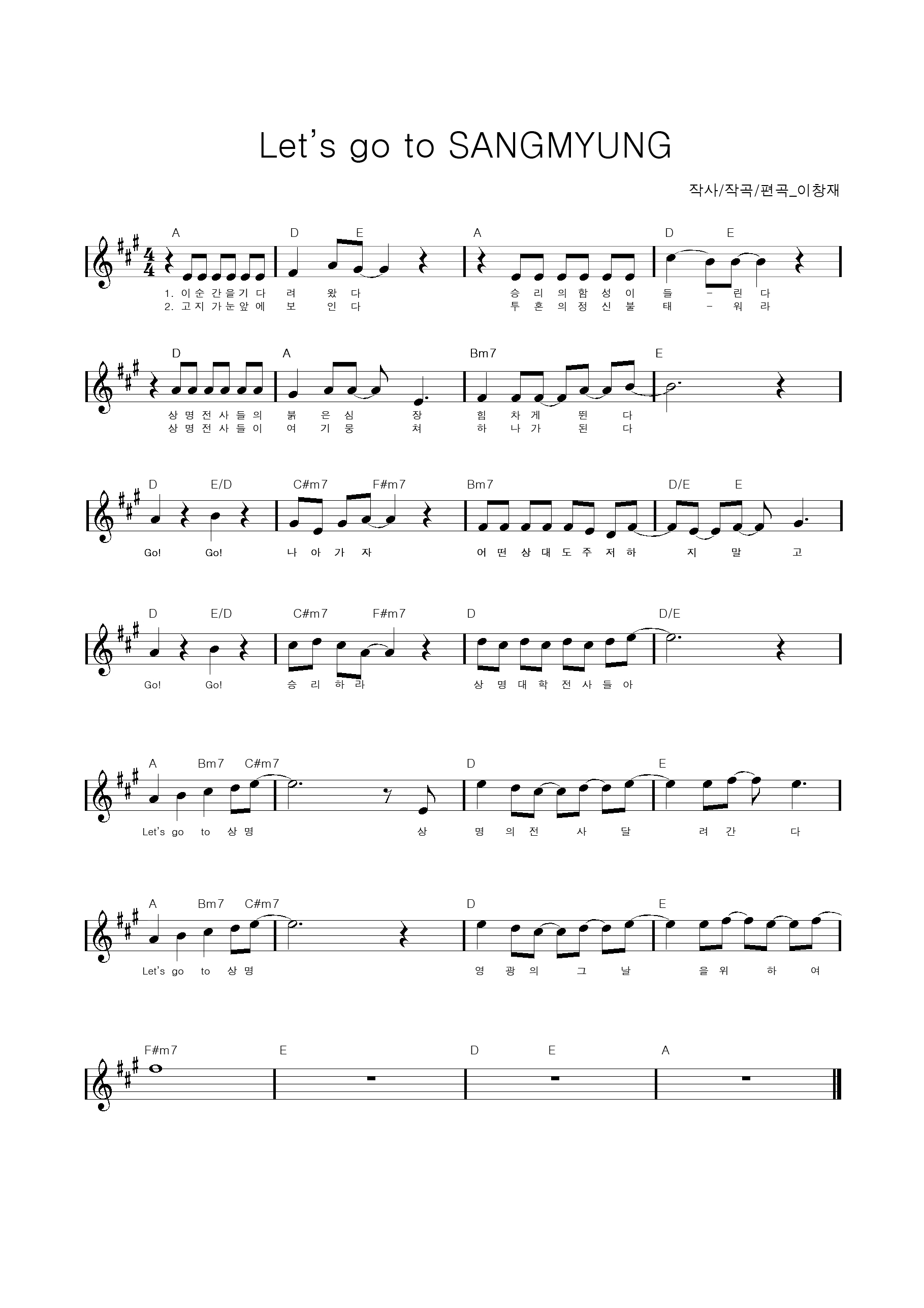 Let's go to 상명 영광의 그날을 위하여