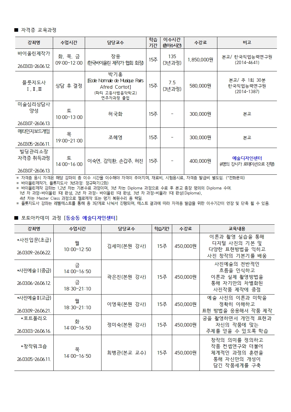 - 수강신청 링크: 일반과정 및 포토아카데미