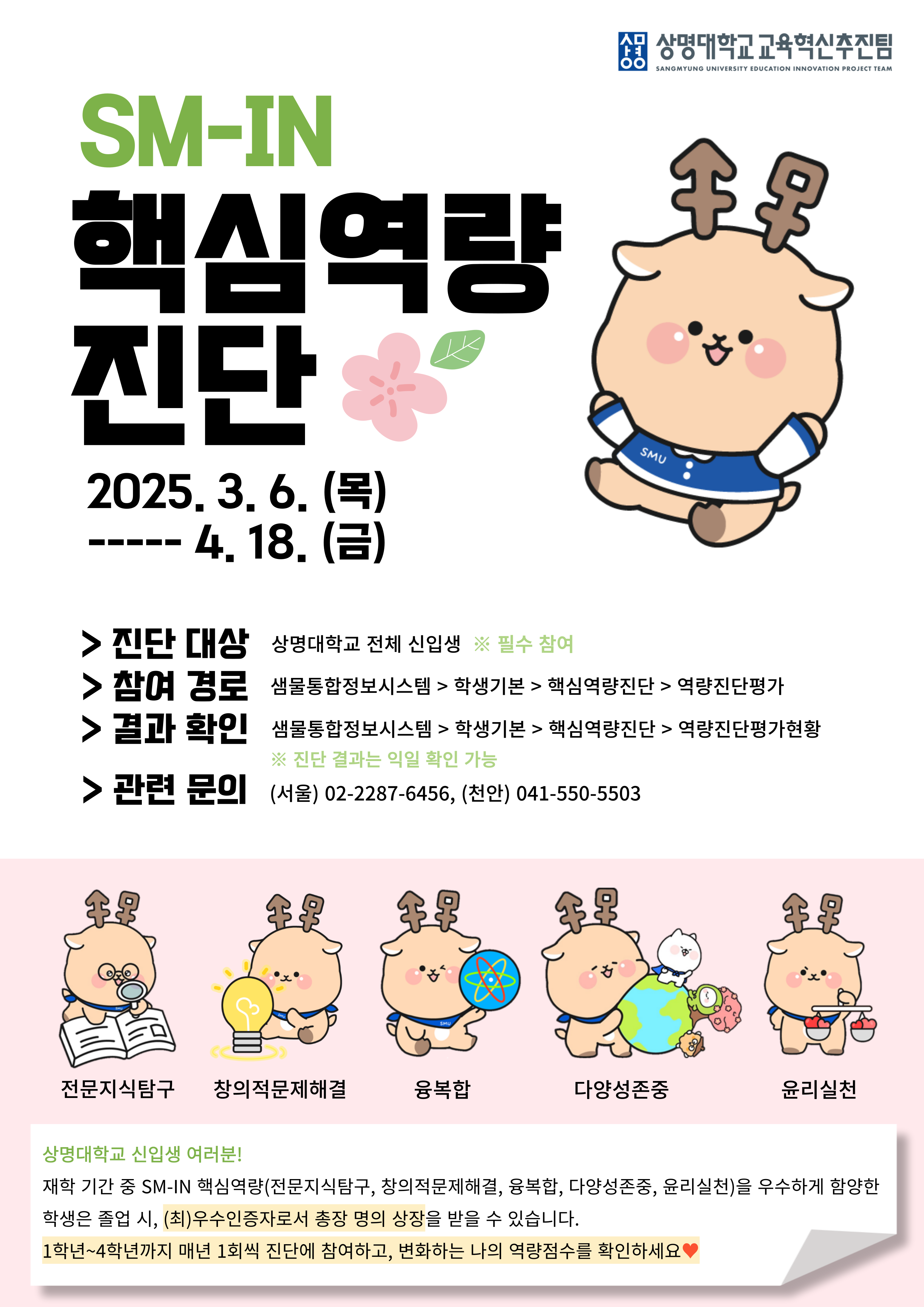 | 상명 [학생생활] | [교육혁신추진팀] 2025학년도 전체 신입생 대상 SM-IN 핵심역량 진단 기간 연장 |