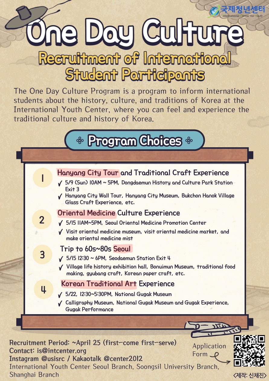 - [생활] One Day Culture Program 참가자 모집 안내