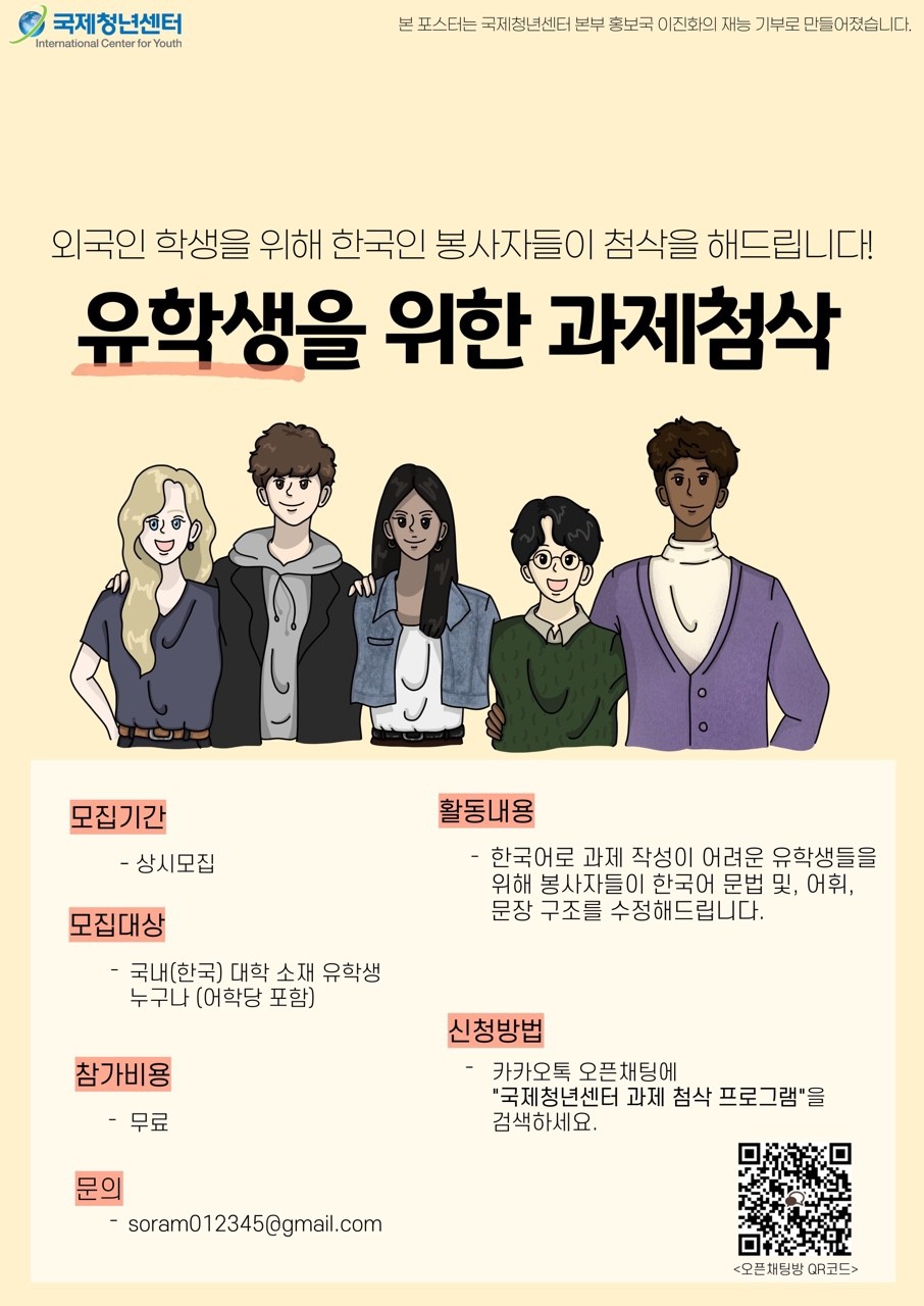 - [생활] 한국어 과제 첨삭 프로그램 참가자 모집 안내