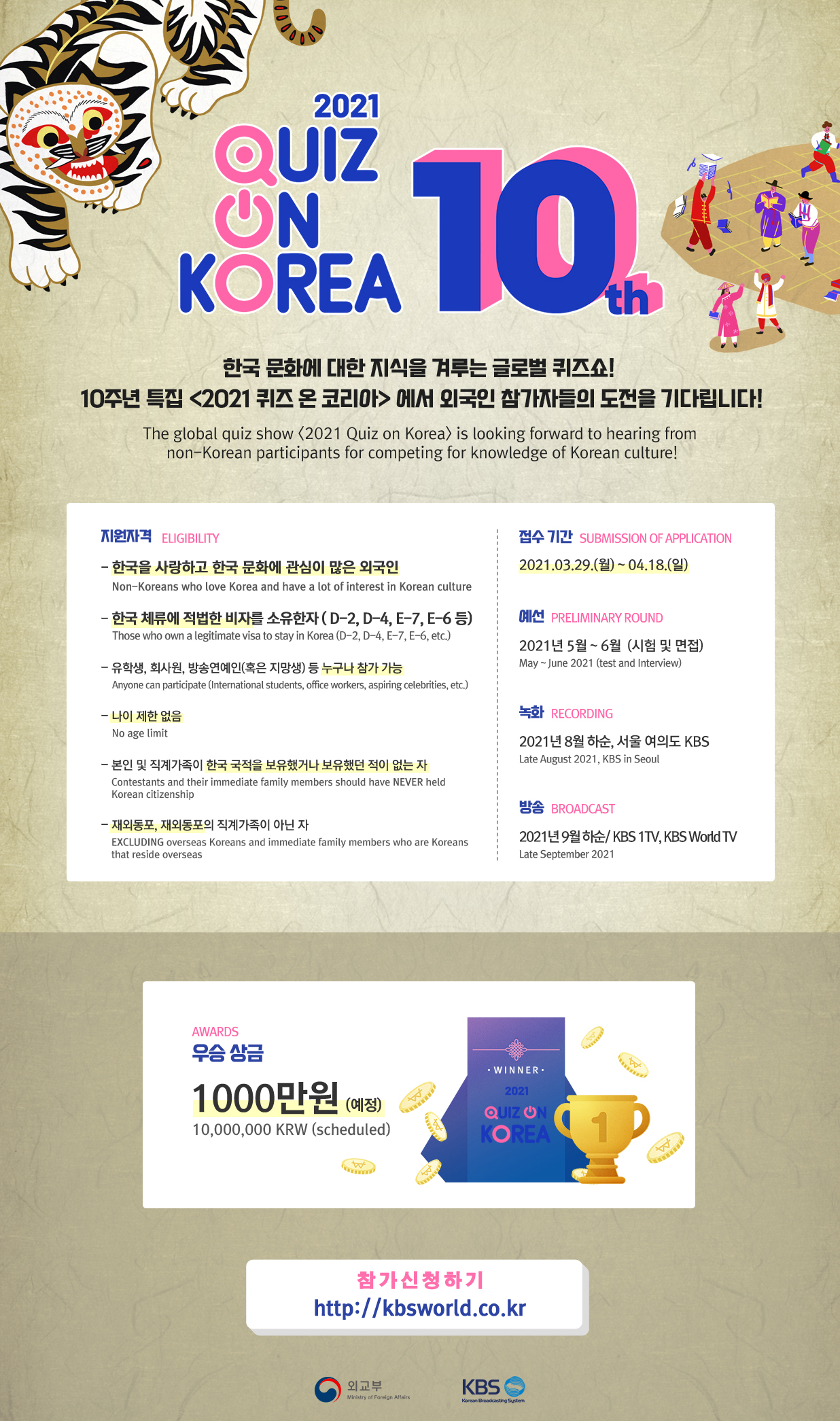 - [생활] 2021 퀴즈 온 코리아 (Quiz on Korea) 참가자 모집 안내