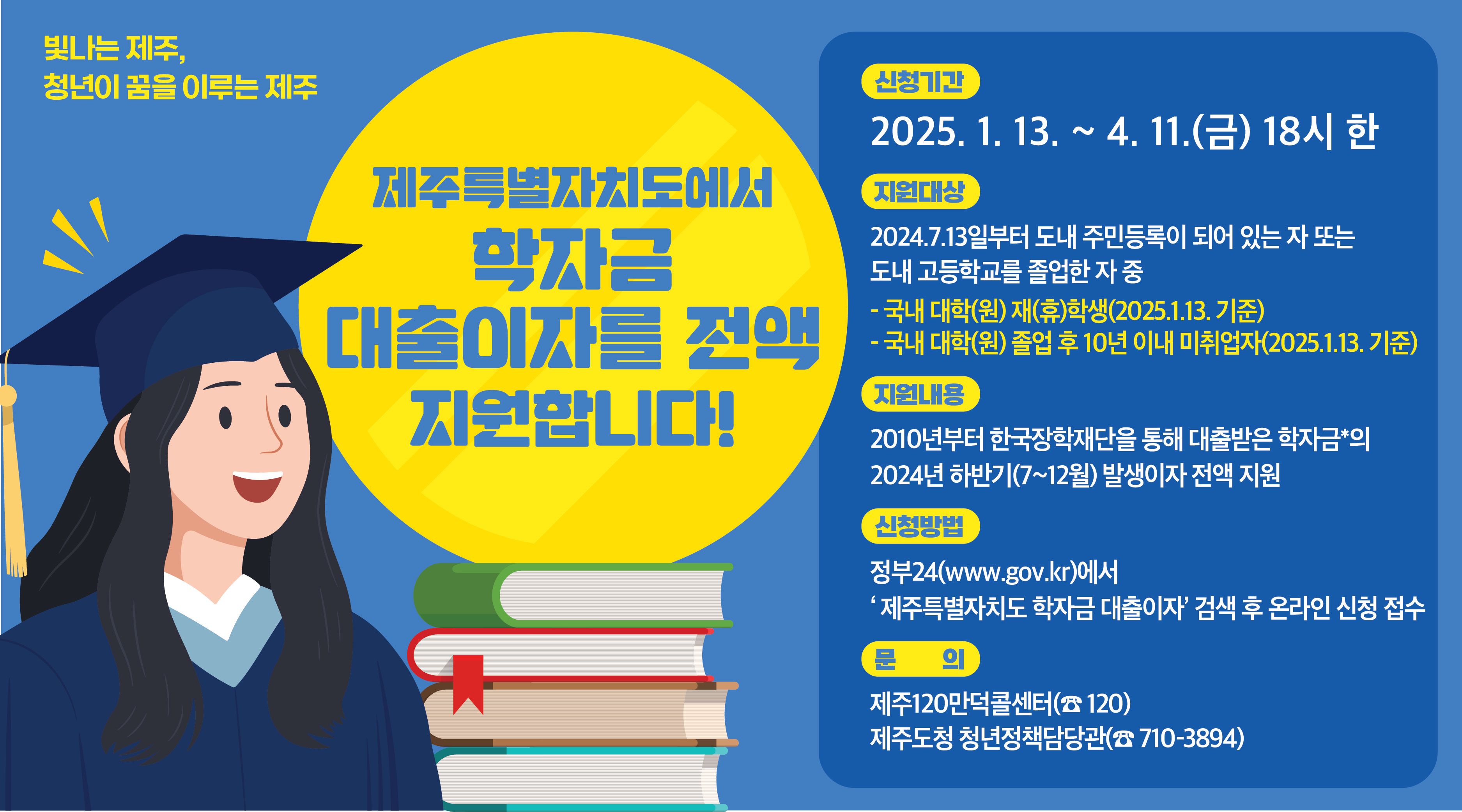 서울 [등록/장학] [학생복지팀] 2025년 상반기 제주특별자치도 학자금 대출 이자 지원 안내 -