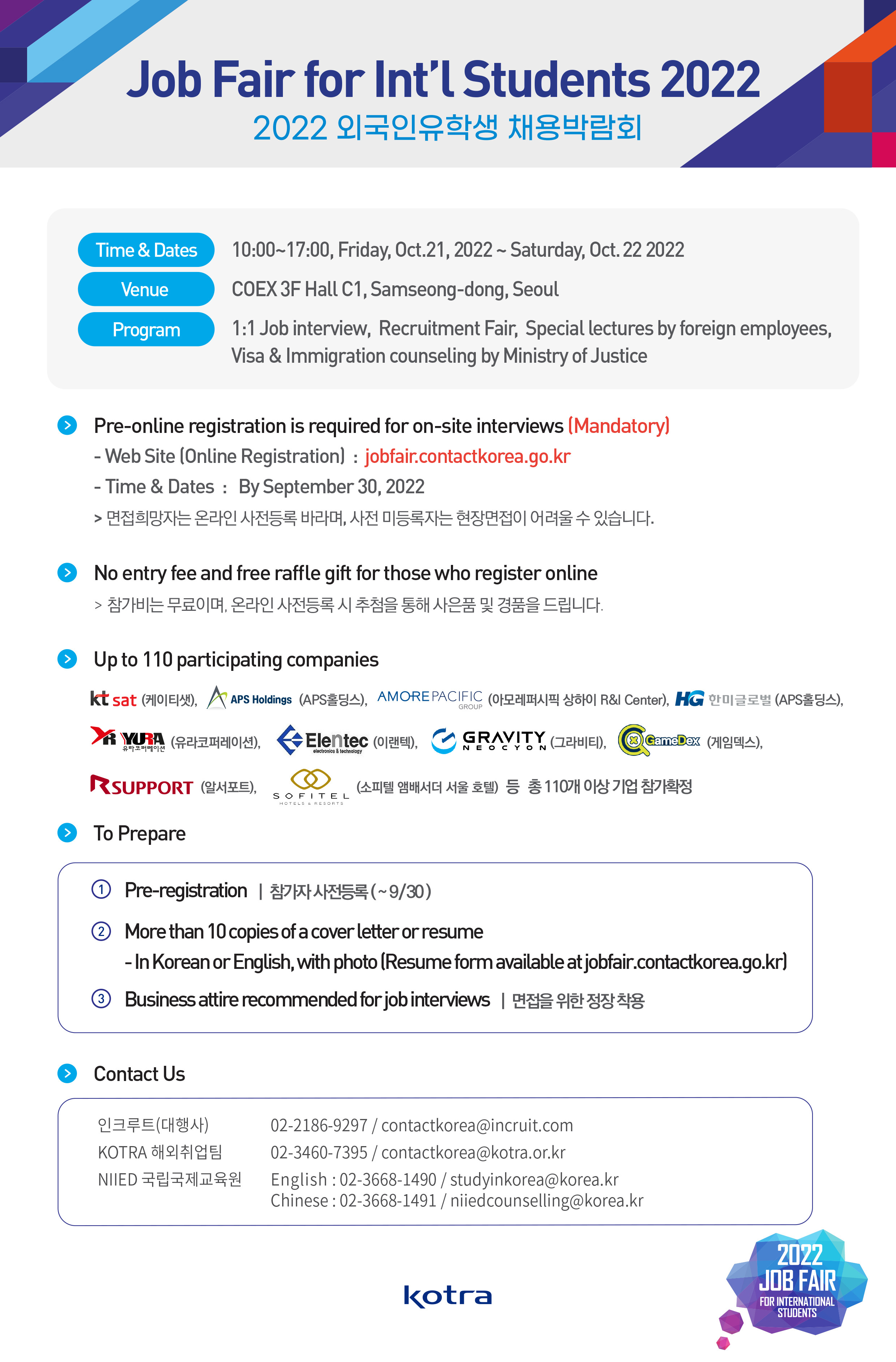 - [국립국제교육원] 2022 외국인 유학생 채용박람회 개최 안내