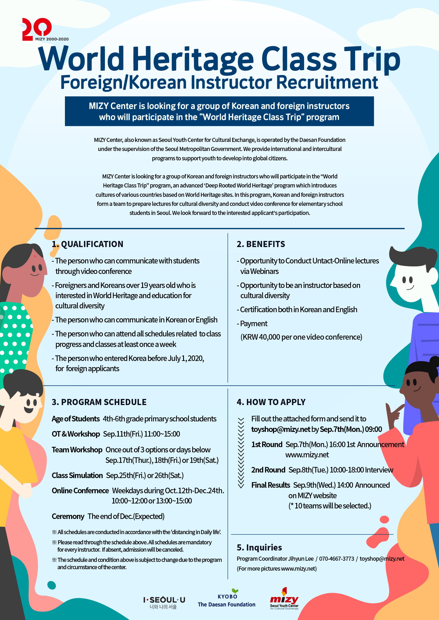 - '세계유산여행교실' 한국인 및 외국인 강사 모집 안내